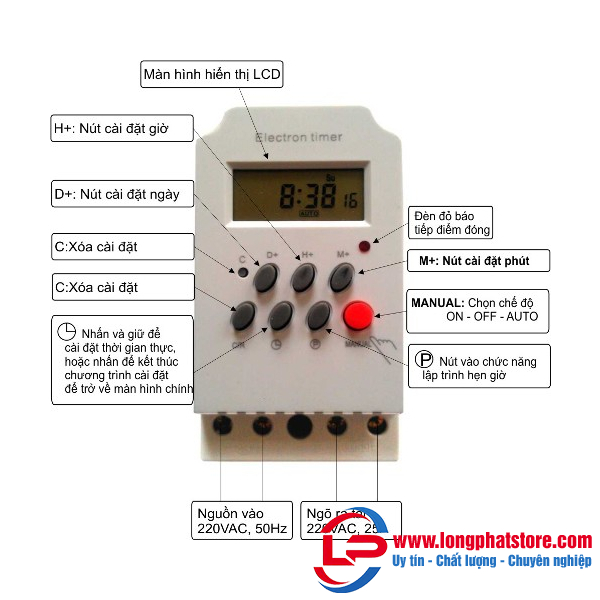 – Với chu kỳ tối đa 18 lần Bật/Tắt lặp lại hàng tuần hay từng ngày theo nhu cầu người dùng.