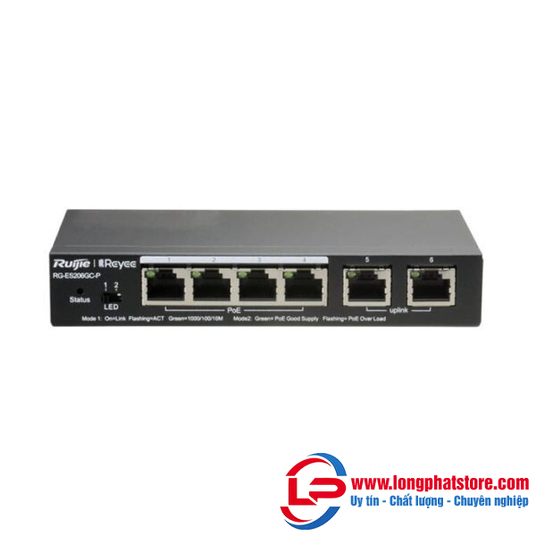 Switch POE 6 cổng 10/100/1000BASE-T Ruijie Reyee RG-ES206GC-P